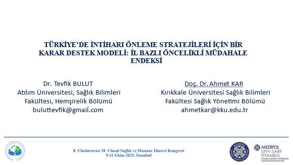 During the 8th International and 18th National Congress on Health and Hospital Administration, held in Istanbul between October 9–11, 2025, Dr. Tevfik Bulut, a faculty member of our department, presented his study entitled “A Decision Support Model for Suicide Prevention Strategies in Türkiye: Province-Based Priority Response Index.”