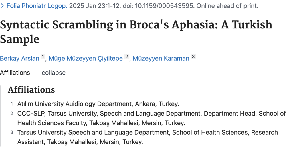The article titled “Syntactic Scrambling in Broca’s Aphasia: A Turkish Sample” by Instructor Dr. Berkay Arslan has been accepted for publication in Folia Phoniatrica et Logopaedica. This notable work aims to bring a fresh perspective to the literature in its field.