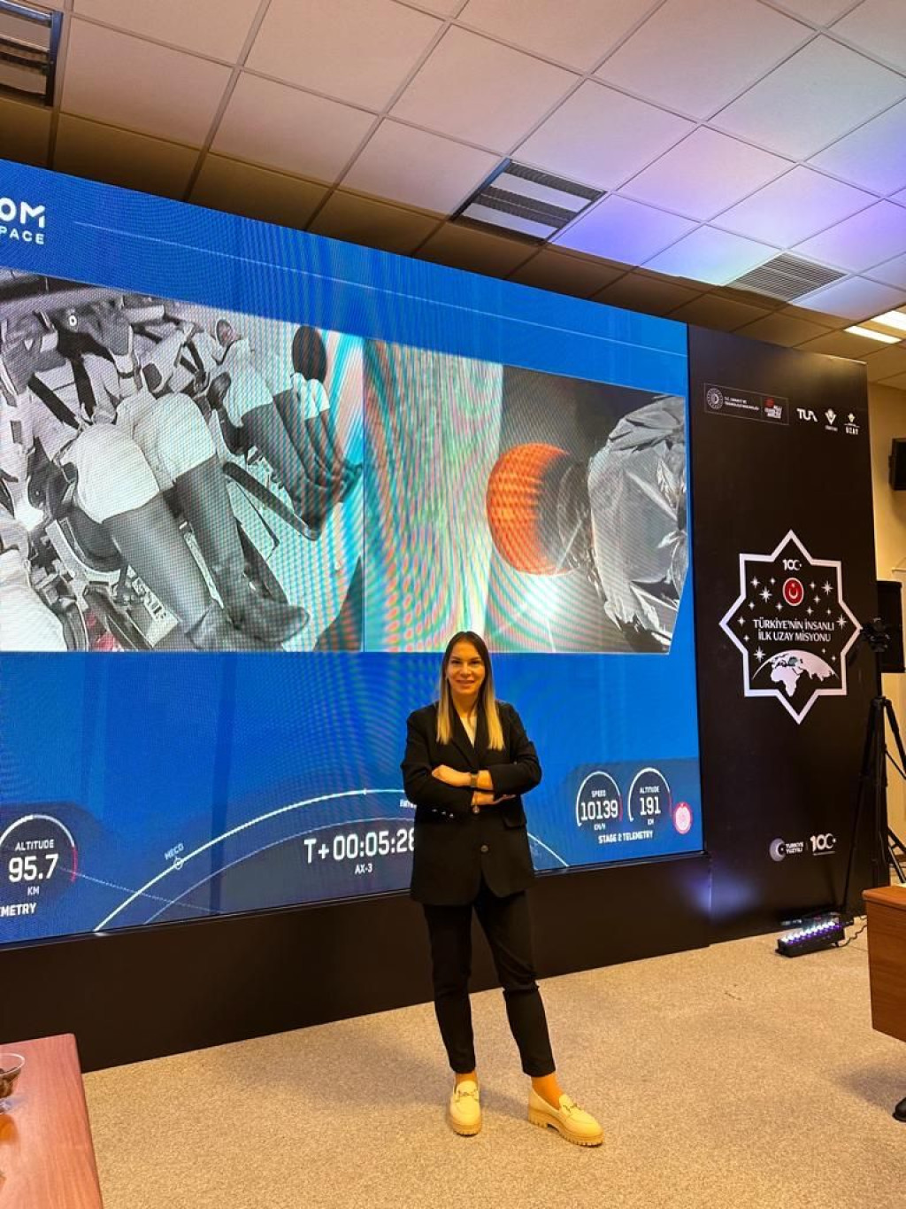 We extend our congratulations to Eda Ersöz, who completed a double major in the Department of Electrical and Electronics Engineering and Mechatronics Engineering of our Faculty of Engineering with outstanding success, and took an active role in the space travel project due to her duty at Tübitak Uzay (Space Technologies Research Institute).