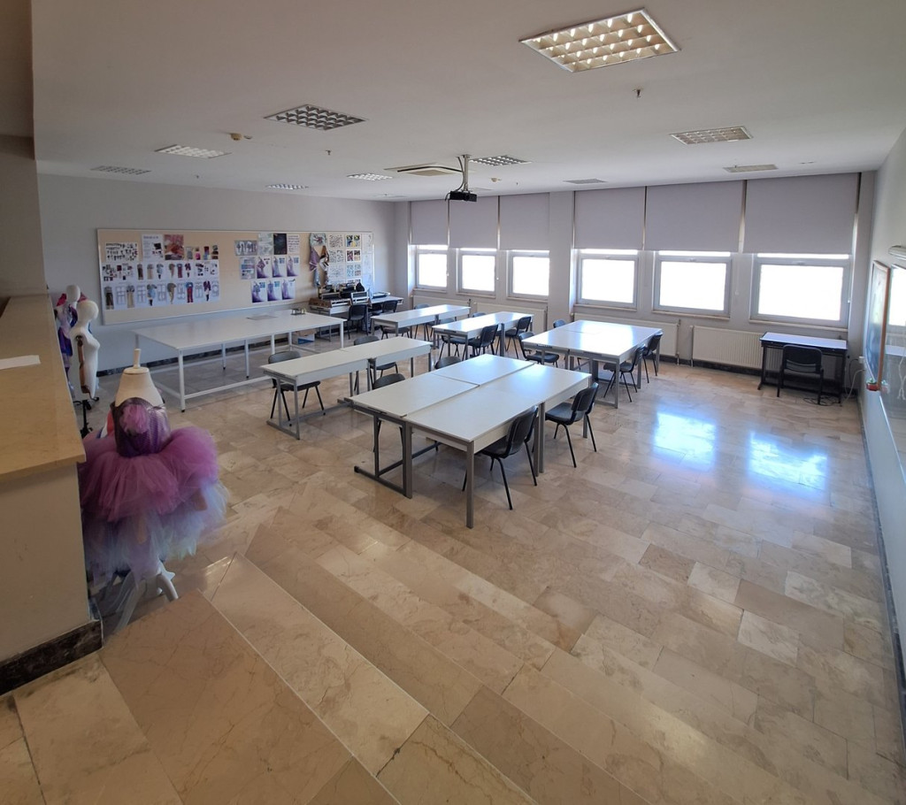 Shared Computer Laboratories for all departments (Architecture-Interior Architecture and Environmental Design, Industrial Product Design, Graphic Design, Textile and Fashion Design) with a total capacity of 110 students. These laboratories aim to enable students to effectively use computer design programs and learn all necessary digital tools in their fields of design, achieving competency and understanding in advanced technological skills.