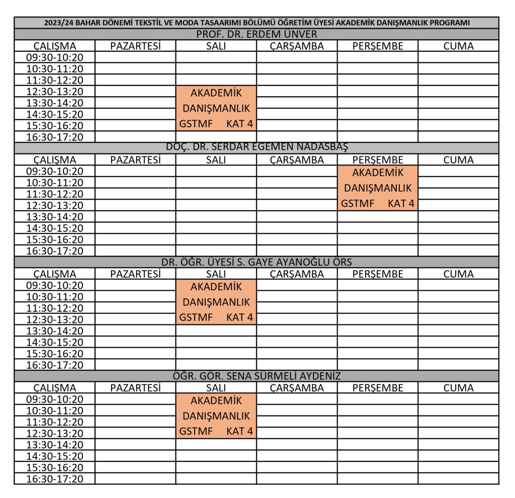 Click here for the Spring Semester 2023-2024 Course Schedule. Please check your elective courses outside your field of study on the Course Schedules Office page.