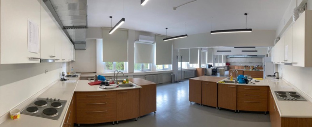 Bu laboratuvarda, öğrencilerin besinlerin sağlıklı bir ortamda saklanması, hazırlanması ve pişirilmesi için yapılması gerekenleri öğrenmeleri amacıyla yapılacak uygulamalara yönelik araç ve ekipmanlar bulunmaktadır. Öğrenciler; Beslenme İlkeleri adlı derste öğrendikleri teorik bilgileri bu laboratuvarda uygulama imkanı bulacaklar, hangi uygulamayı ne amaçla yaptıklarını, hijyenik ortam sağlamak için dikkat edilecek hususları, besinlerin saklanması, hazırlanması ve pişirilmesi aşamalarında ne gibi yararlı ya da zararlı etkileşimler olabileceğini ve bu etkileşimlerin nasıl kontrole alınabileceğini gözlemleyerek öğreneceklerdir.