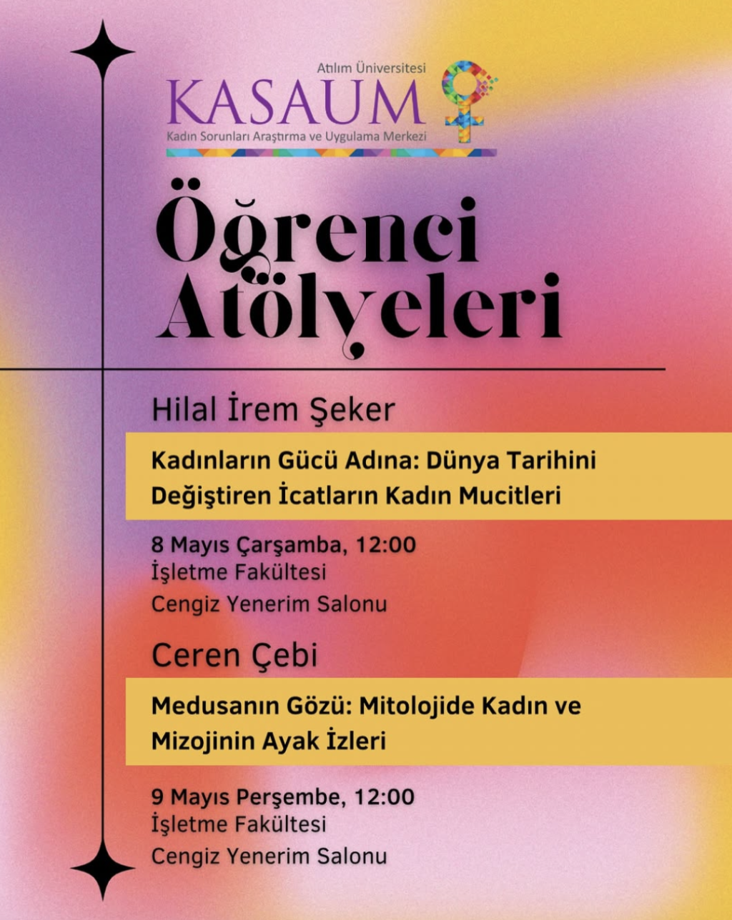 Dönem boyunca KASAUM ile birlikte çalışan Hilal İrem Şeker ve Ceren Çebi’nin kolaylaştırıcılığında, etkileşimli yöntemlerle gerçekleştirilecek olan atölye çalışmalarımıza davetlisiniz!