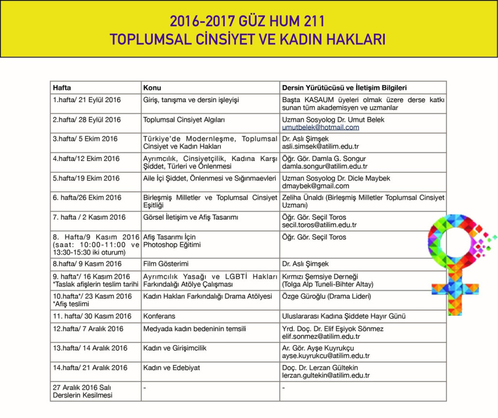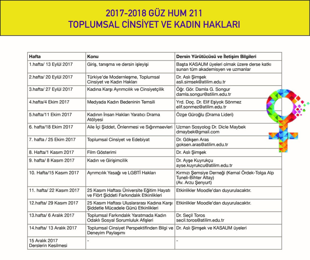 2017 Bahar dönemiyle birlikte KASAUM tarafından koordine edilen dersler hem güz hem bahar döneminde öğrencilerin seçimine açılmış; 2018 Bahar dönemiyle birlikte ise her iki dönemin dersleri içerik olarak açıkça farklılaştırılarak HUM 211 Toplumsal Cinsiyet ve Kadın Hakları ile HUM 212 Toplumsal Cinsiyet Eşitliği olmak üzere iki ayrı derse dönüştürülmüştür. Böylece öğrencilerin lisans eğitimleri süresince toplumsal cinsiyet eşitliğine ilişkin iki ayrı dersi alması olanaklı hale gelmiştir.
