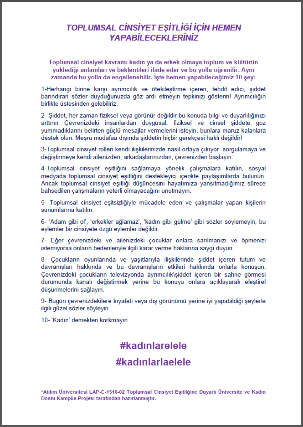 - Toplumsal Cinsiyet Eşitliği İçin Hemen Yapabilecekleriniz!