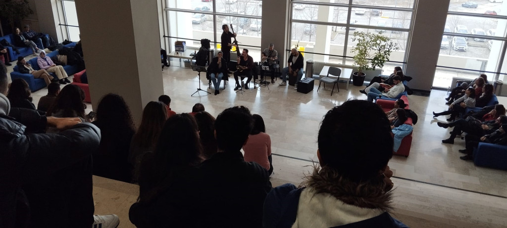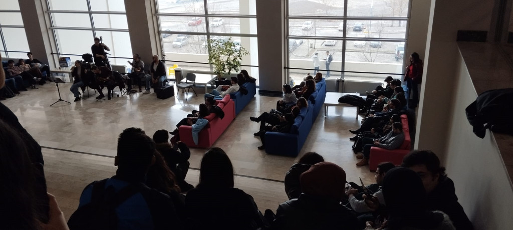 Bas Gitarda Şinasi Celayiroğlu, Kontrbasta Gökhan Över, Cajonda Özgür Vuranoğlu, Saksafonda Barış Çayır’dan oluşan grubun solisti Eda toprak’ın Jazz ve Blues’un en güzel örneklerini seslendirdiği şarkılara öğrenciler ve personel keyifle eşlik etti.
