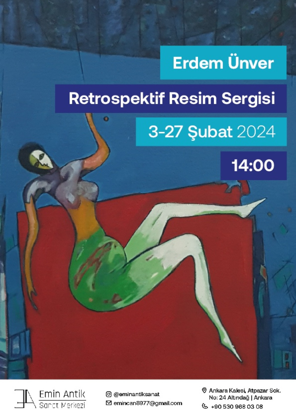 Tekstil ve Moda Tasarımı Bölümü Öğretim üyesi Prof. Dr. Erdem Ünver’in Retrospektif Resim Sergisi 3 Şubat 2024 Cumartesi günü saat 14:00’ta EMİN ANTİK SANAT MERKEZİ’nde açılıyor.
