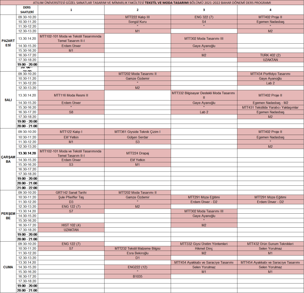 2021-2022 Bahar Ders Programı