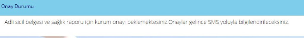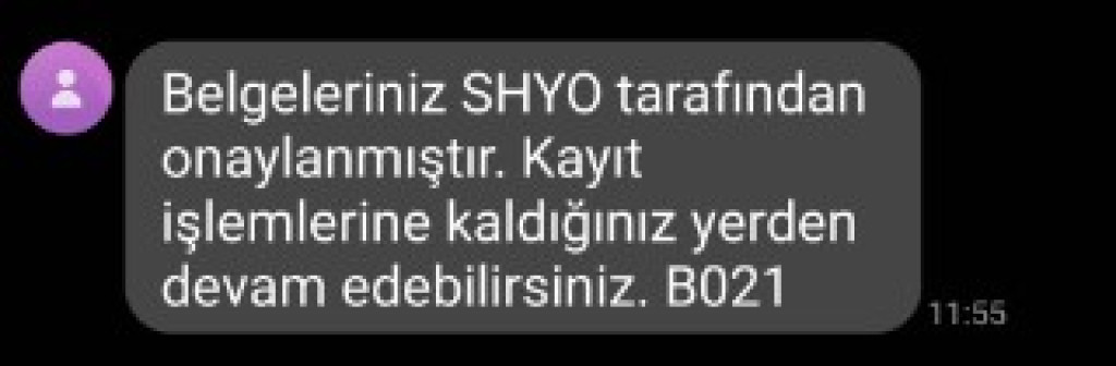 Yüklenmiş belgelere ilişkin telefonunuza gelecek SMS bilgileri: