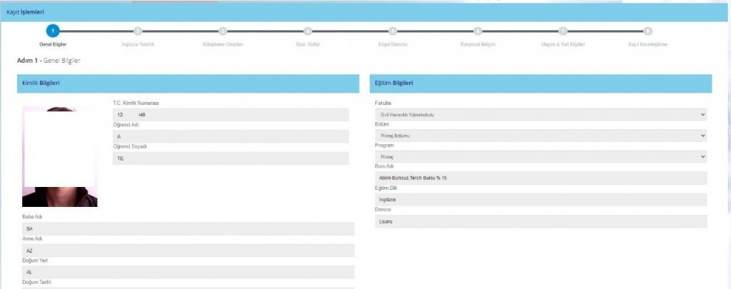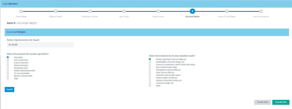 Kayıt işleminin sağlıklı bir şekilde yapılması için aşağıda anlatıldığı şekilde ve süresi içerisinde sistem üzerinden 8 adımın tümünün tamamlanması gerekmektedir.