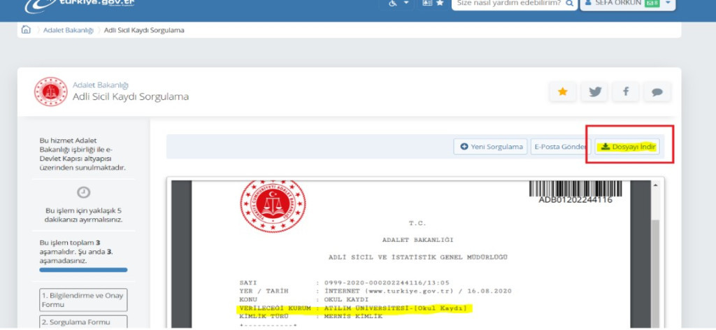 Sonrasında gelen ekrandan “Dosya İndir” butonuna basılarak dosya pdf olarak kaydedilir.