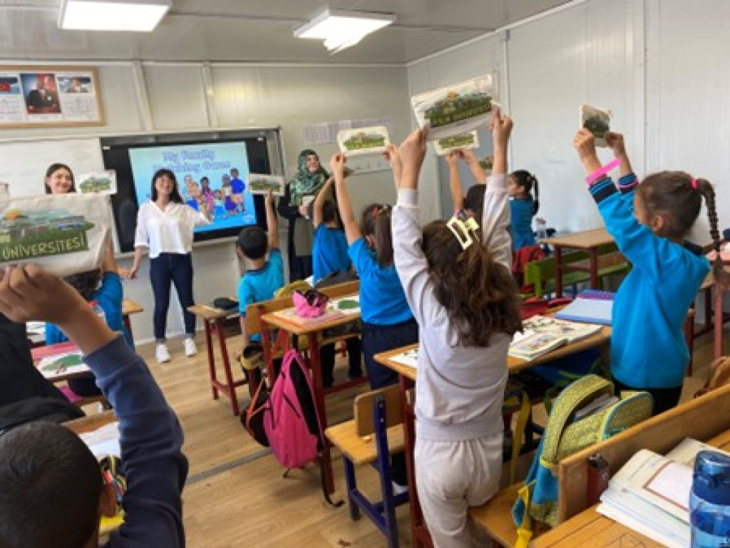 Üniversitemiz Fen-Edebiyat Fakültesi Öğretim Görevlisi Dr. Zeynep Rana Turgut tarafından yürütülen toplumsal katkı projesi kapsamında, İngiliz Dili ve Edebiyatı Bölümü 3. sınıf öğrencilerinden Muazzez Tekinarslan, Tuna Ayçiçek ve Sena Özge Özer ile birlikte 21 Ekim 2024 tarihinde Hatay Nizamettin Özkan İlkokulu ziyaret edilmiştir.