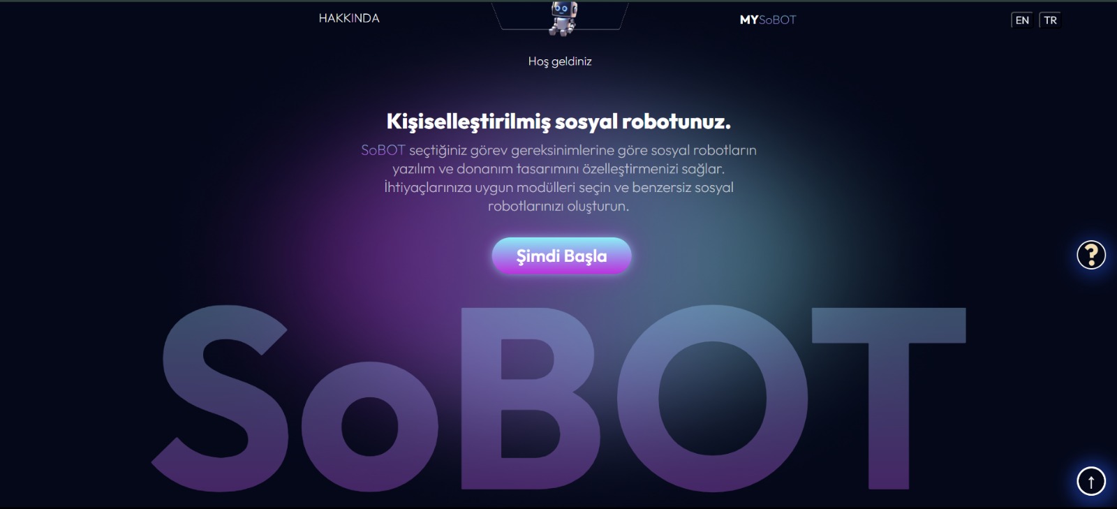 Bu projenin amacı, modüler ve kişiselleştirilmiş sosyal robotların kullanıcıların katılımıyla tasarlanmasını sağlayacak bir yazılım platformunun geliştirilmesidir. Proje kapsamında, bu platform kullanılarak tasarlanacak bir sosyal robotun teknoloji gösterimi amaçlı fiziksel modelinin elde edilmesi de planlanmıştır.