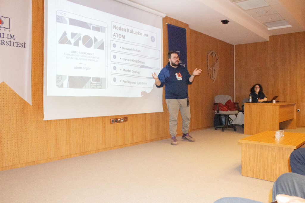 Atılım Üniversitesi öğrencilerine yönelik düzenlenen Oyun Sektöründe Girişimcilik semineri, ARGEDA-TTO tarafından organize edildi ve büyük ilgi gördü. Seminerde konuşmacı olarak, oyun sektöründe deneyimli bir girişimci olan Lama Games Kurucu Ortağı Tuna Altay Sofiyar yer aldı. Seminer, 7 Mart Perşembe günü Mühendislik Fakültesi 1022 numaralı konferans salonunda gerçekleşti.