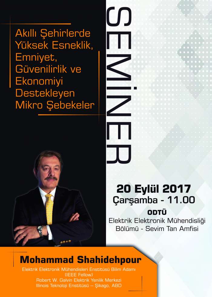 20 Eylül 2017 Çarşamba günü saat 11:00'da Akıllı Şehirlerde Yüksek Esneklik, Emniyet, Güvenilirlik ve Ekonomiyi Destekleyen Mikro Şebekeler Semineri vardır. Seminere katılmanız sizin yararınıza olacaktır.