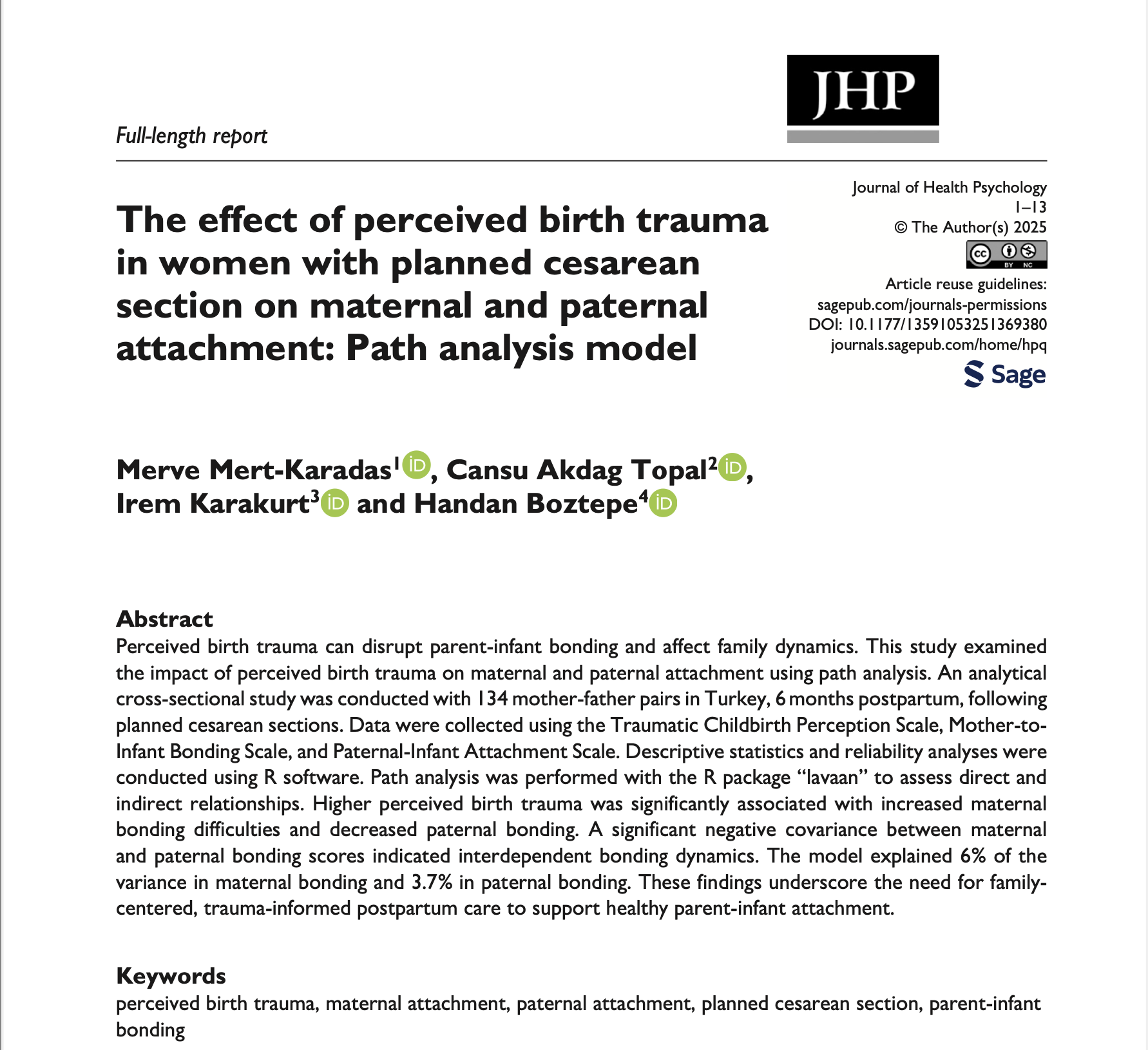 Atılım Üniversitesi Sağlık Bilimleri Fakültesi öğretim elemanı Arş. Gör. İrem Karakurt’un “The Effect of Perceived Birth Trauma in Women With Planned Cesarean Section on Maternal and Paternal Attachment: Path Analysis Model” başlıklı araştırma makalesi, Journal of Health Psychology dergisinde yayımlanmıştır. Dergi, Web of Science kapsamındaki SSCI indeksinde taranmaktadır.