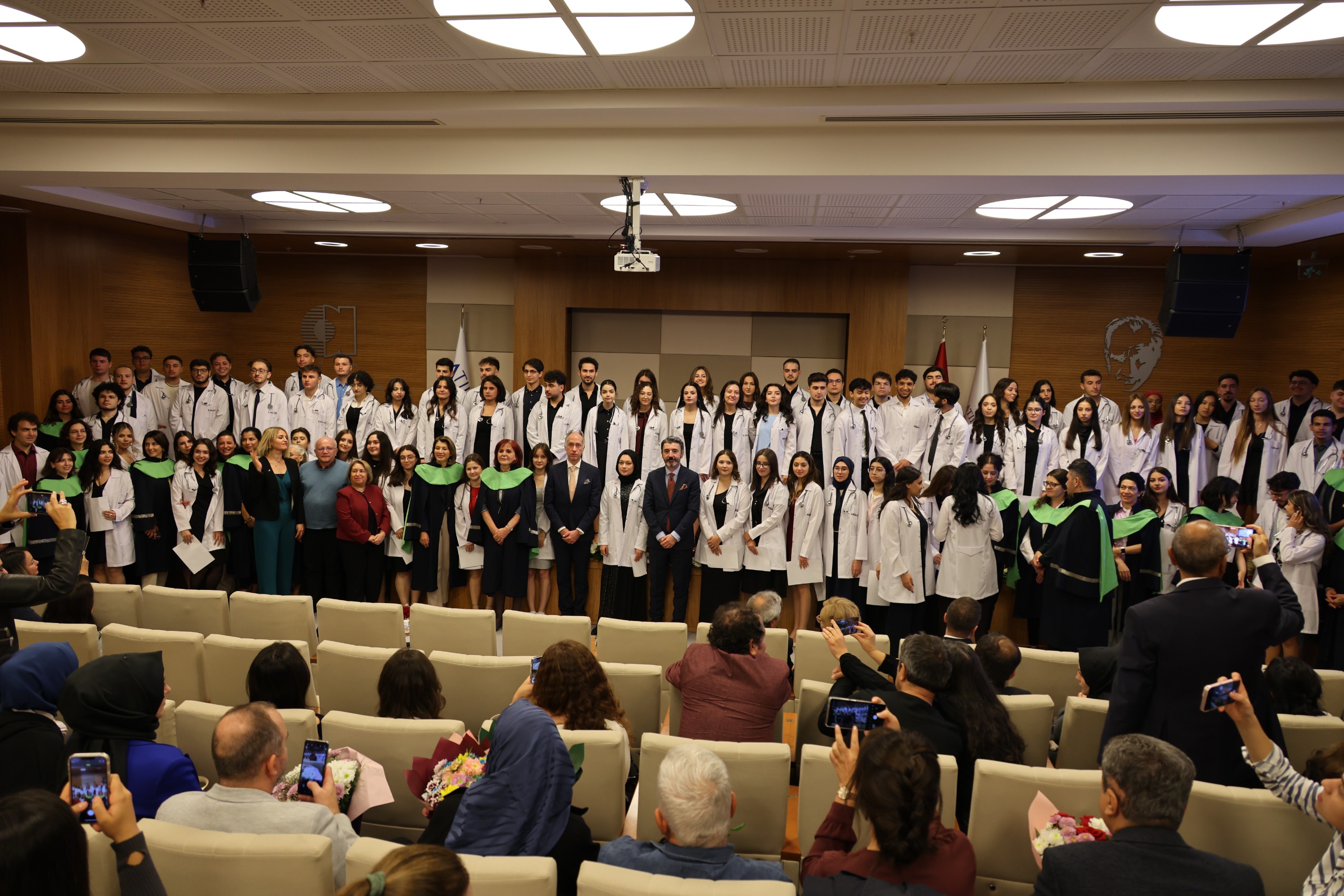 Konuşmaların ardından öğrenciler, öğretim üyelerinin ellerinden beyaz önlüklerini giyerek meslek yaşamlarına sembolik bir başlangıç yaptı. Ailelerin yoğun ilgi gösterdiği törende duygusal anlar yaşandı. Öğrenciler, ömür boyu sürecek hekimlik yolculuklarının ilk adımını atmanın gururunu ve heyecanını yaşadı. Tören, toplu fotoğraf çekimiyle sona erdi.