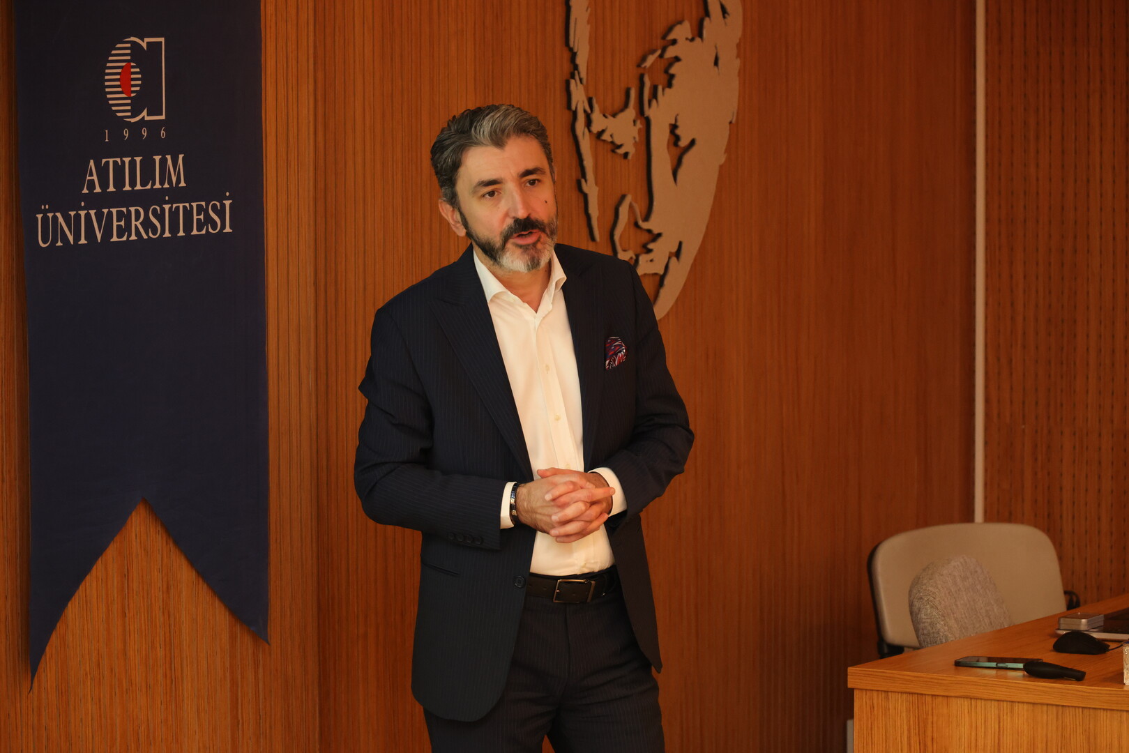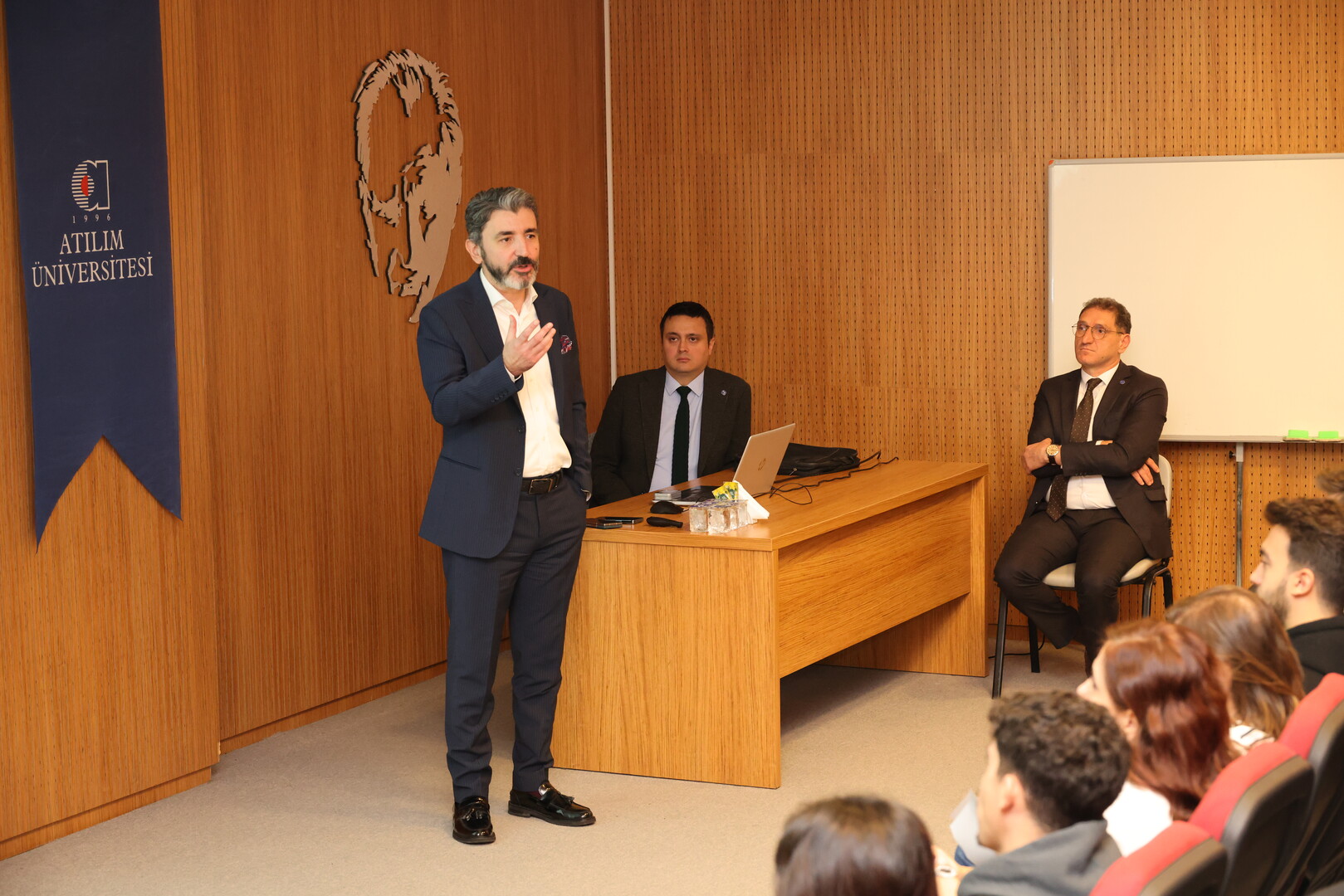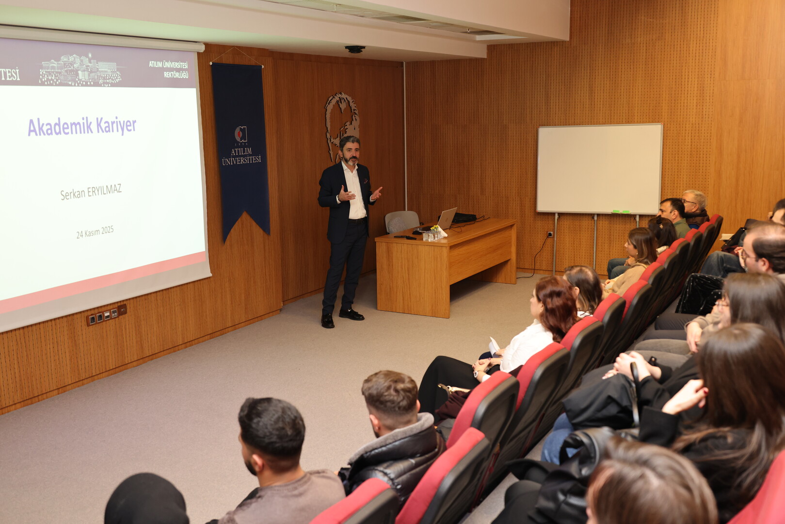 Atılım Üniversitesi Rektörü Prof. Dr. Serkan Eryılmaz, Rektör Fakültede ve ATU100 Üniversite Hayatına giriş dersi programları kapsamında öğrencilerle bir araya geldi. Konuşmasına, 24 Kasım Öğretmenler Günü’nü kutlayarak başlayan Prof. Dr. Eryılmaz gerek ilk ve ortaöğretimde gerekse üniversite düzeyinde eğitimcilerin üstlendiği kritik rolü vurguladı. İyi bir akademik danışmanın önemine işaret eden Prof. Dr. Eryılmaz, kariyer gelişiminde üniversite seçiminden ziyade doğru danışmanla çalışmanın belirleyici olduğunu ifade etti.