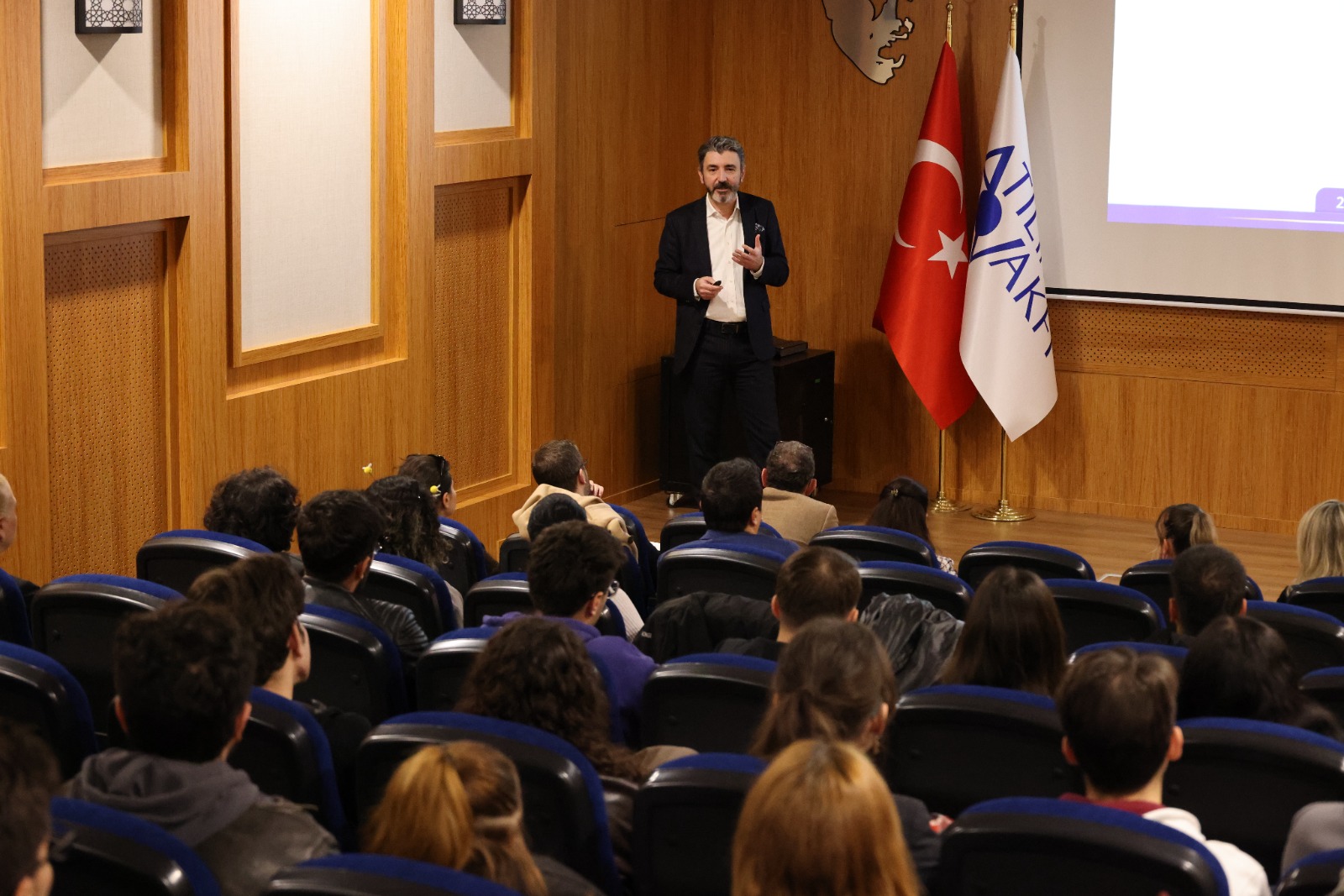 Türkçenin doğru kullanılmaması hâlinde gerek gündelik yaşamda gerekse resmi yazışmalarda ortaya çıkabilecek anlatım bozukluklularını örnekler üzerinden anlatan Rektör Prof. Dr. Serkan Eryılmaz, konuşmasının önemli bir bölümünü yapay zekanın olasılıksal dil modeline ayırdı.