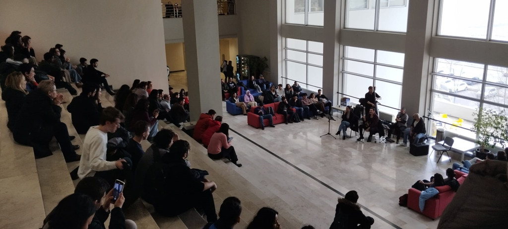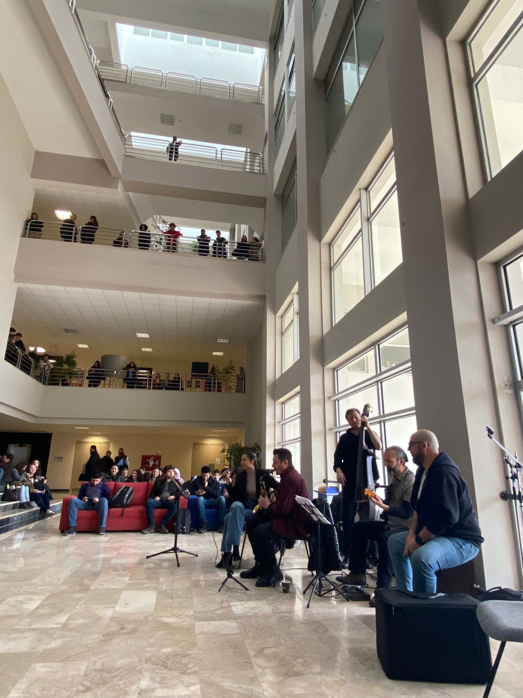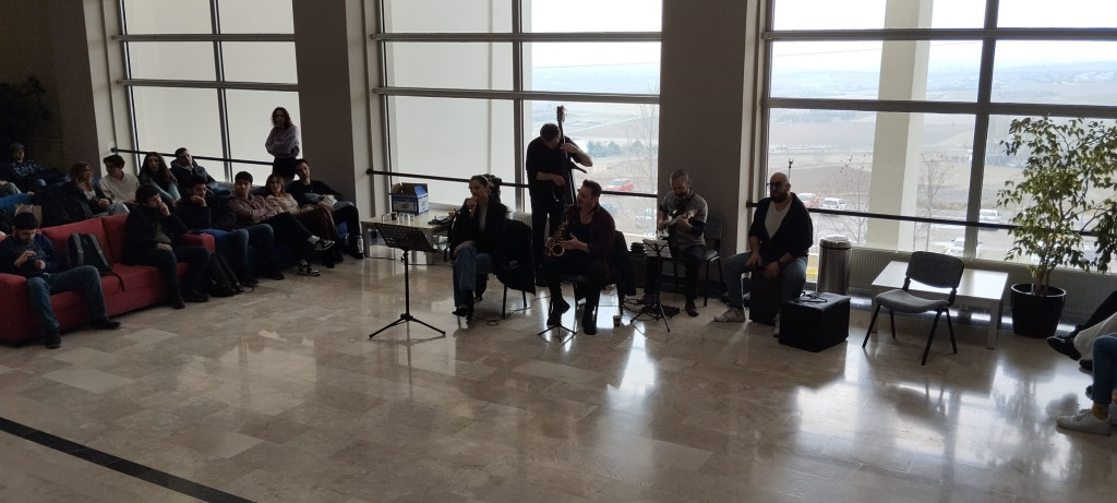 Bas Gitarda Şinasi Celayiroğlu, Kontrbasta Gökhan Över, Cajonda Özgür Vuranoğlu, Saksafonda Barış Çayır’dan oluşan grubun solisti Eda toprak’ın Jazz ve Blues’un en güzel örneklerini seslendirdiği şarkılara öğrenciler ve personel keyifle eşlik etti.