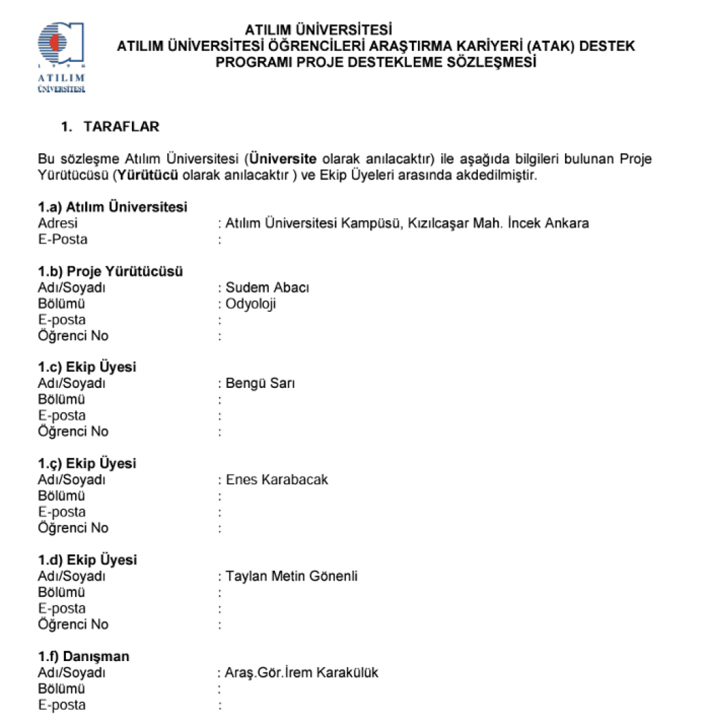 Araştırma Görevlimiz İrem Karakülük danışmanlığında, Atılım Üniversitesi Sağlık Bilimleri Fakültesi Odyoloji Bölümü 2. Sınıf öğrencilerinden Sudem Abacı yürütücülüğünde, Bengü Sarı, Enes Karabacak ve Taylan Metin Gönenli ile birlikte yapılan “Çocuklarda Dinleme Zorluklarının Değerlendirilmesi: C.H.I.L.D Ölçeği ile Karşılaştırmalı Bir Çalışma” başlıklı ATAK projesi desteklenmeye hak kazanmış ve yürütülmeye devam etmektedir.