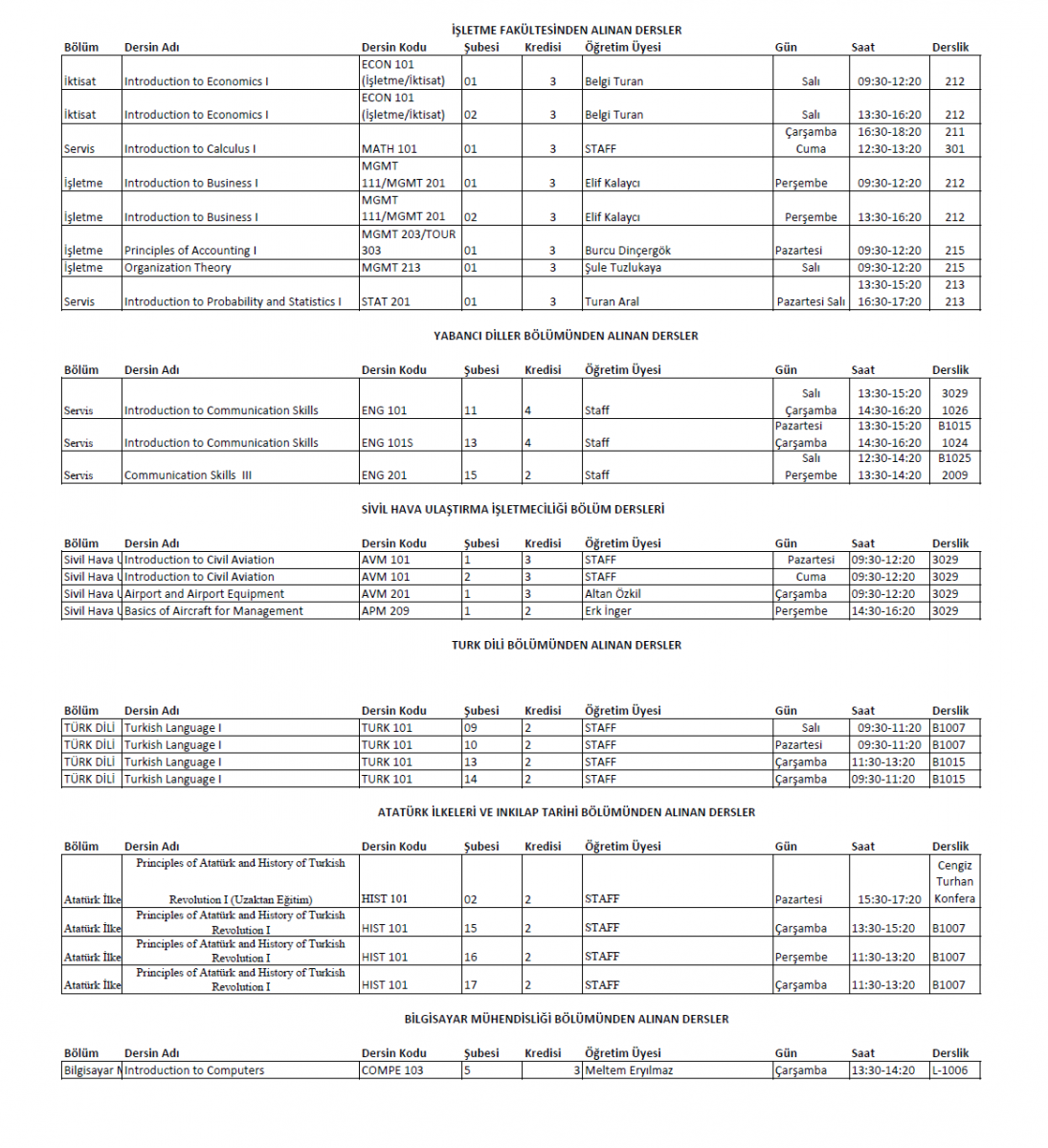 - Sivil Havacılık Yüksekokulu (4 yıllık)