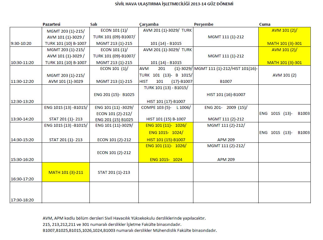12.09.2013 tarihli ders programı değişiklik (TABLO)